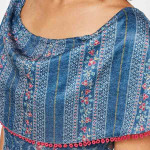 Blue and red printed basic jumpsuit ,has a round neck, short sleeves, 2 pockets